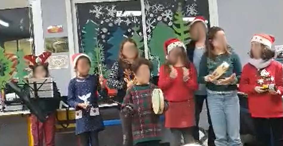 Per la darrièra setmana abans las vacanças avèm aprestat un espectacle de Nadal. Avèm cantat, jogat de musica e aviam aprestat plen de presents pel mercat. Dijòus los gigants son venguts dançar amb nosautres. Lo Paire Nadal nos a rejonh e nos ofriguèt de presents. Lo jorn de las vacanças avèm escotat un conte totes amassa.