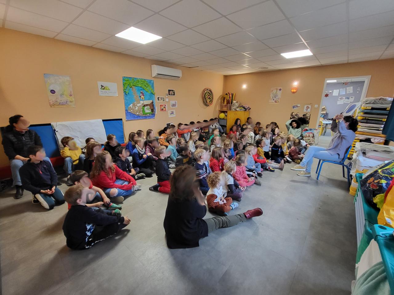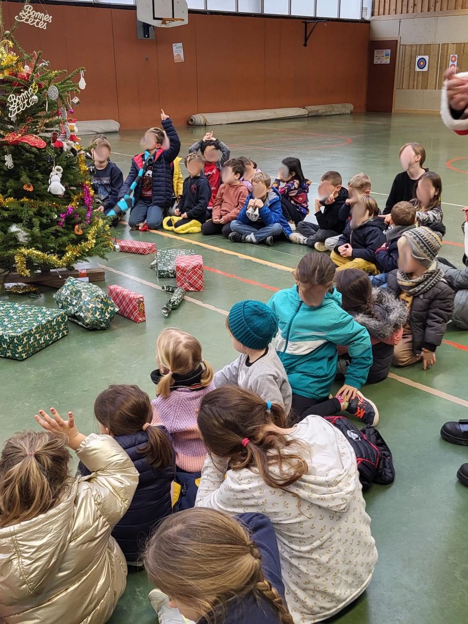 Pour la dernière semaine avant les vacances nous avons présenté un spectacle de Noël. Nous avons chanté, joué de la musique et nous avions préparé plein de cadeaux pour le marché. Jeudi les géants sont venus danser avec nous. Le Père Noël nous a rejoint et nous a offert des cadeaux. Le jour des vacances nous avons écouté un conte tous ensemble.