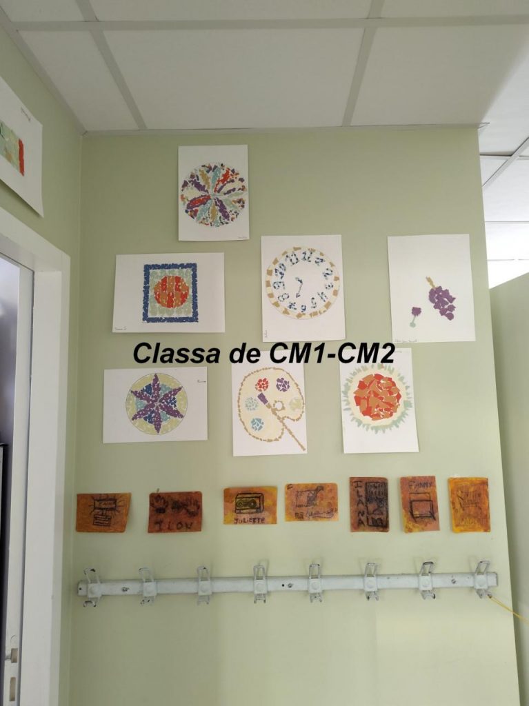 « Alara avèm fach de mosaica. Caliá dessenhar al gredon quicòm sus un fuèlh. I a d’objèctes, de vegetals, d’animals. Aprèp avèm copat e pegat de bocins de papèr de color dedins per emplenar la forma. Avèm daissat un pauc de blanc. » Jeanne, Juliette, Fanny e Blanche per la classa de CM1-CM2.