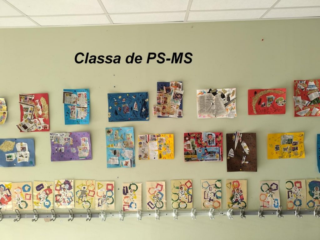 « En fach avèm fach coma Pablo Picasso. Avèm pegat de tròces de jornal e aprèp avèm mes de palhetas e colorat e aprèp tanben avèm fach de tampons » Margot e Juliette per la classa de PS-MS.