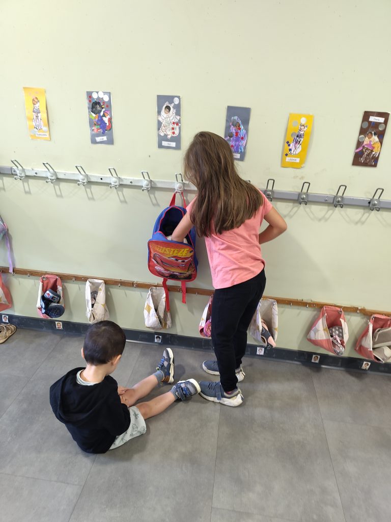 Les classes ont fait leur rentrée et les premières institutions se sont lancées. Nous avons commencé l’escaleta. C’est un binôme d’enfant, un grand et un plus petit qui se sont formés. Le grand aidera le plus petits dans la vie quotidienne de l’école et aussi dans des moments de classe qui s’appellent les décloisonnés. Ils ont commencé à fabriquer des choses ensemble et à faire connaissance.
