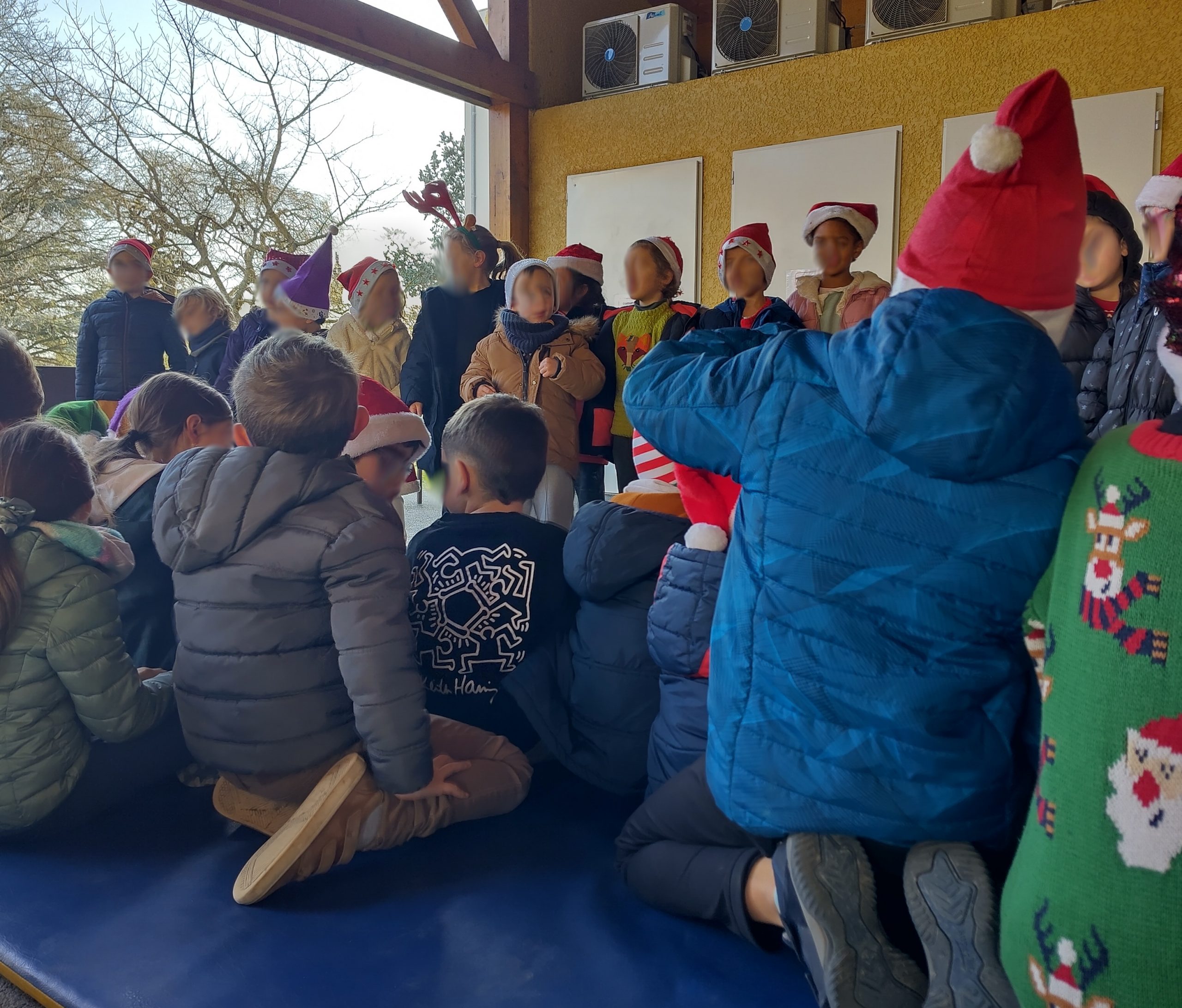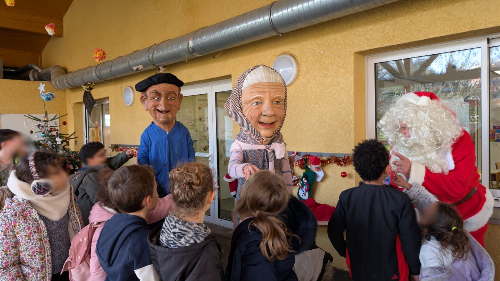 L’année 2025 se termine et à la Calandreta nous avons fait la fête pour cette dernière semaine. Tout au long de la semaine les enfants ont vendu ce qu’ils avaient préparé dans les ateliers décloisonnés (mélange de tous les niveaux de l’école) sur un marché à l’entrée de l’école. Mardi ils ont fait un spectacle de chant pour toutes les familles qui s’est terminé par un moment convivial dans les classes. Jeudi les enfants ont eu la visite surprise du Père Noël qui est venu avec Papeta et Mameta danser avec eux. Voilà comment s’est fini l’année 2025 pour les calandrons, nous vous souhaitons à tous une bonne année !